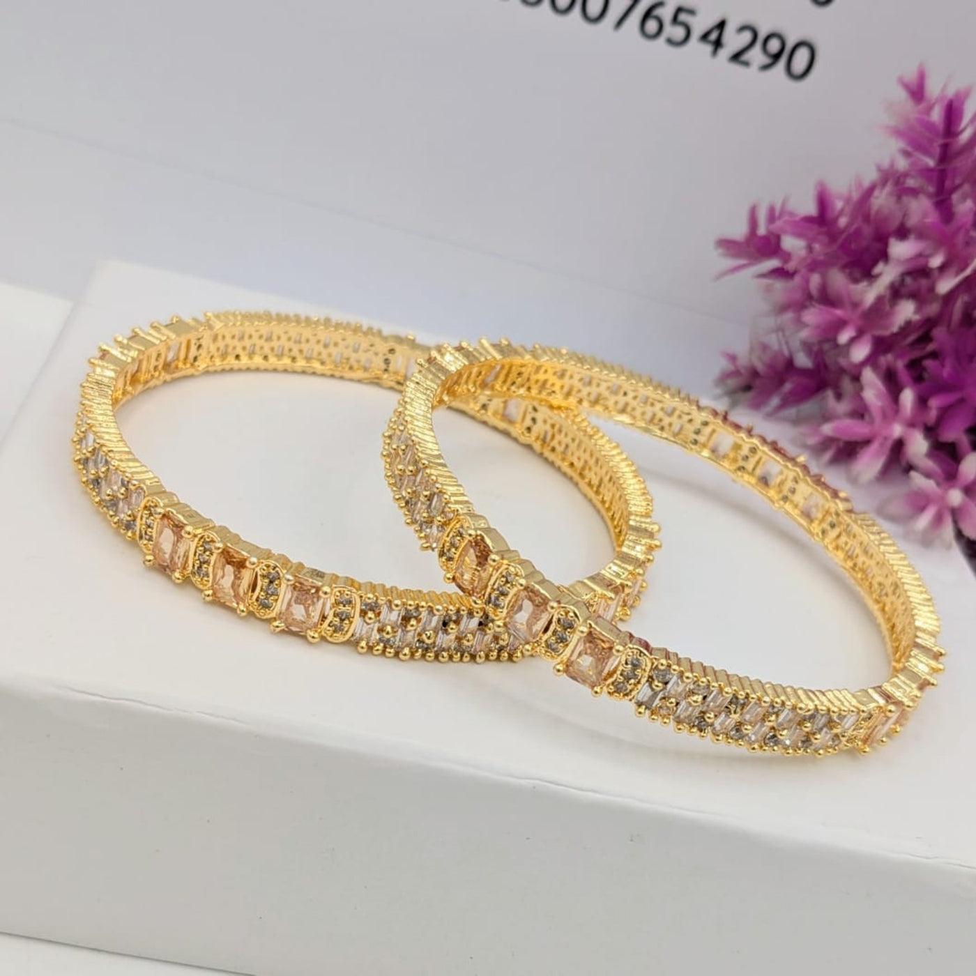 Elevate your elegance with the Golden AD Zircon Bangles from pjfashion.pk. Expertly crafted with a radiant golden finish and adorned with sparkling zircon stones, these bangles offer a perfect blend of traditional charm and contemporary style. Designed to complement both casual and formal wear, they provide a refined sparkle that enhances any outfit effortlessly. Durable and lightweight, these bangles ensure comfortable wear while making a sophisticated statement. Ideal for special occasions or daily elegance, they reflect expert craftsmanship and timeless beauty.