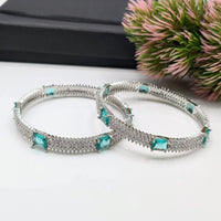 Add a refreshing pop of colour to your style with our Mint 2 Pc Bangles. Featuring a smooth, elegant finish in a soothing mint shade, these bangles are perfect for adding a subtle yet eye-catching touch to any outfit. Lightweight and versatile, they can be worn alone for a minimal look or paired with other jewellery for a statement style. Ideal for daily wear, festive gatherings, or casual outings