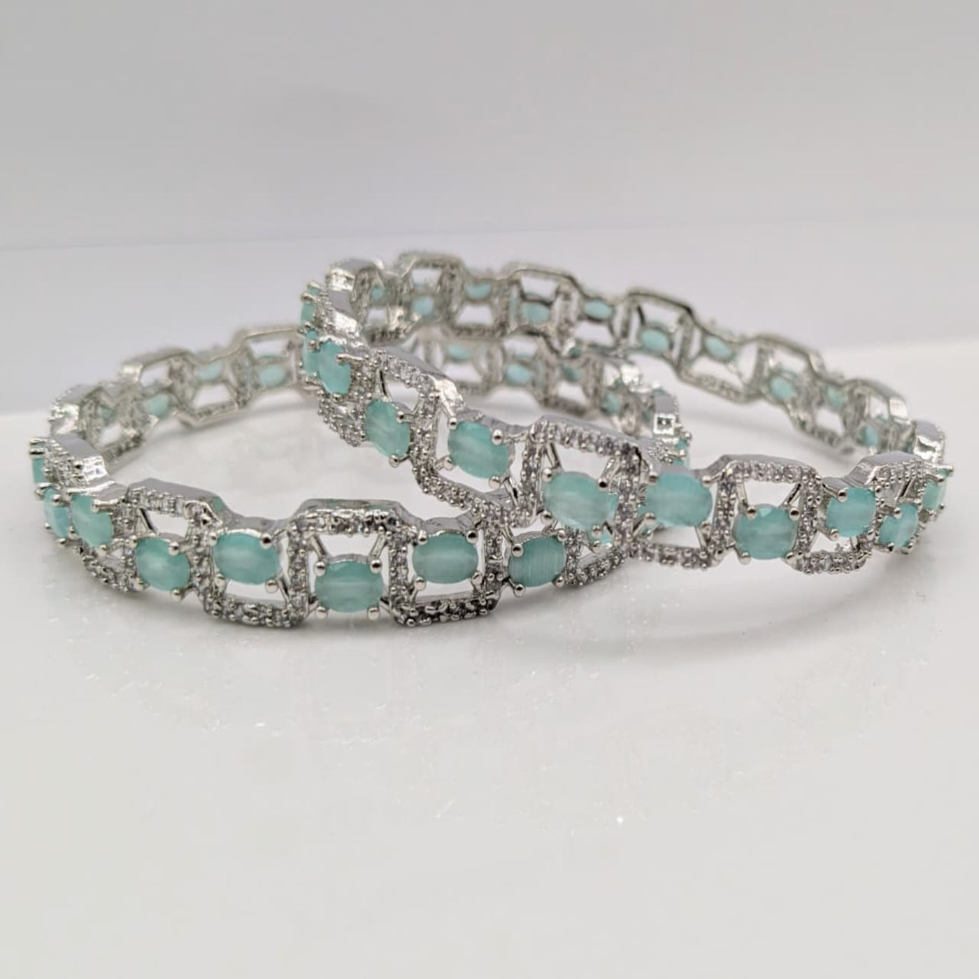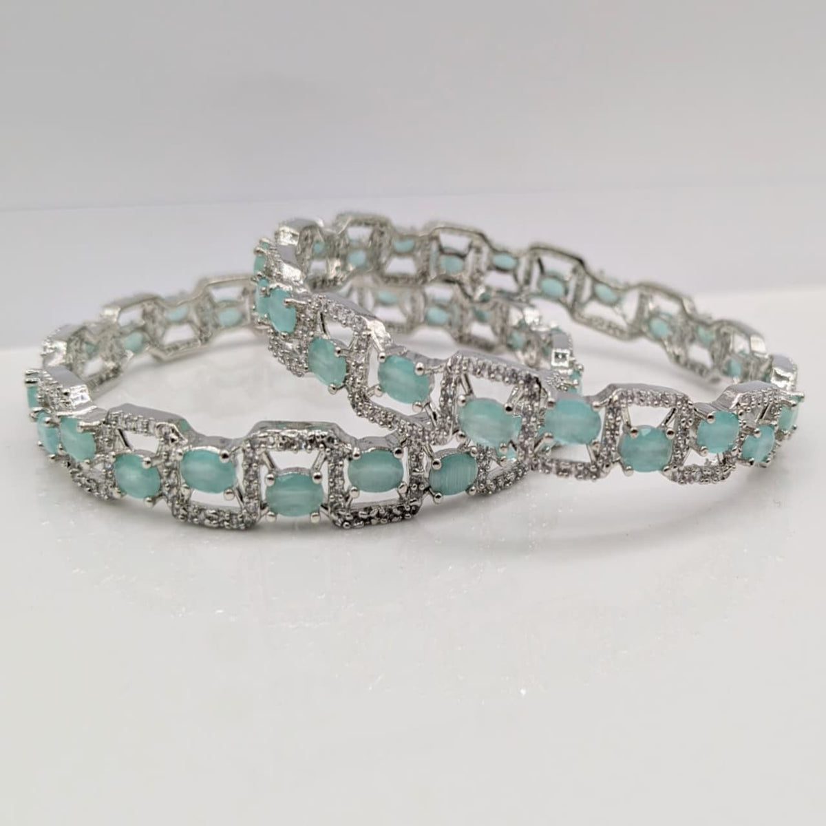 Crafted with precision, these Silver AD Bangles from PJ FASHION showcase exquisite Karrat-quality silver adorned with finely set artificial diamonds. Their sophisticated design adds a luxurious touch to any ensemble, offering both durability and timeless elegance. Perfect for special occasions or elevating everyday wear, these bangles embody expert craftsmanship and lasting shine.