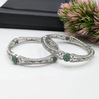 Enhance your accessory collection with these expert-crafted Silver Fancy Green Studded Bangles from pjfashion.pk. Meticulously designed, their polished silver finish paired with vibrant green accents offers both elegance and a unique statement. Perfect for adding a refined touch to traditional or contemporary outfits, these bangles combine durability with stylish sophistication, ensuring lasting appeal for any occasion.