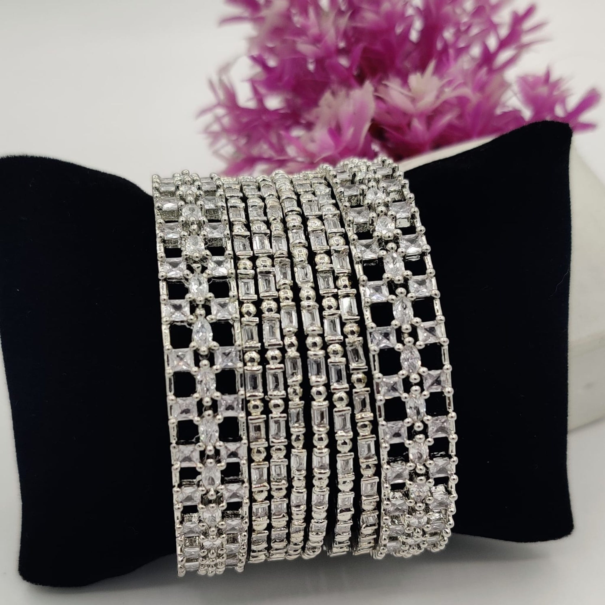 White Zircon 8 Pc Silver Bangles (FSAB11)