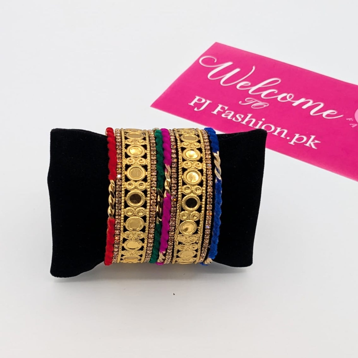 Experience elegance with our Elegant Multi Gold Bangles set. This stunning collection features a variety of golden bangles, each with a unique design to add a touch of glamour to any outfit. Handcrafted with care by pjfashion.pk, our bangles are the perfect accessory for any occasion.