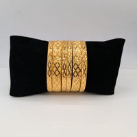This set of 6 elegant bangles by pjfashion.pk features beautiful graphic designs, making it a stylish addition to any outfit. With expertly crafted details, these bangles are the perfect choice for those looking to elevate their fashion game. Upgrade your accessory collection with these eye-catching pieces.