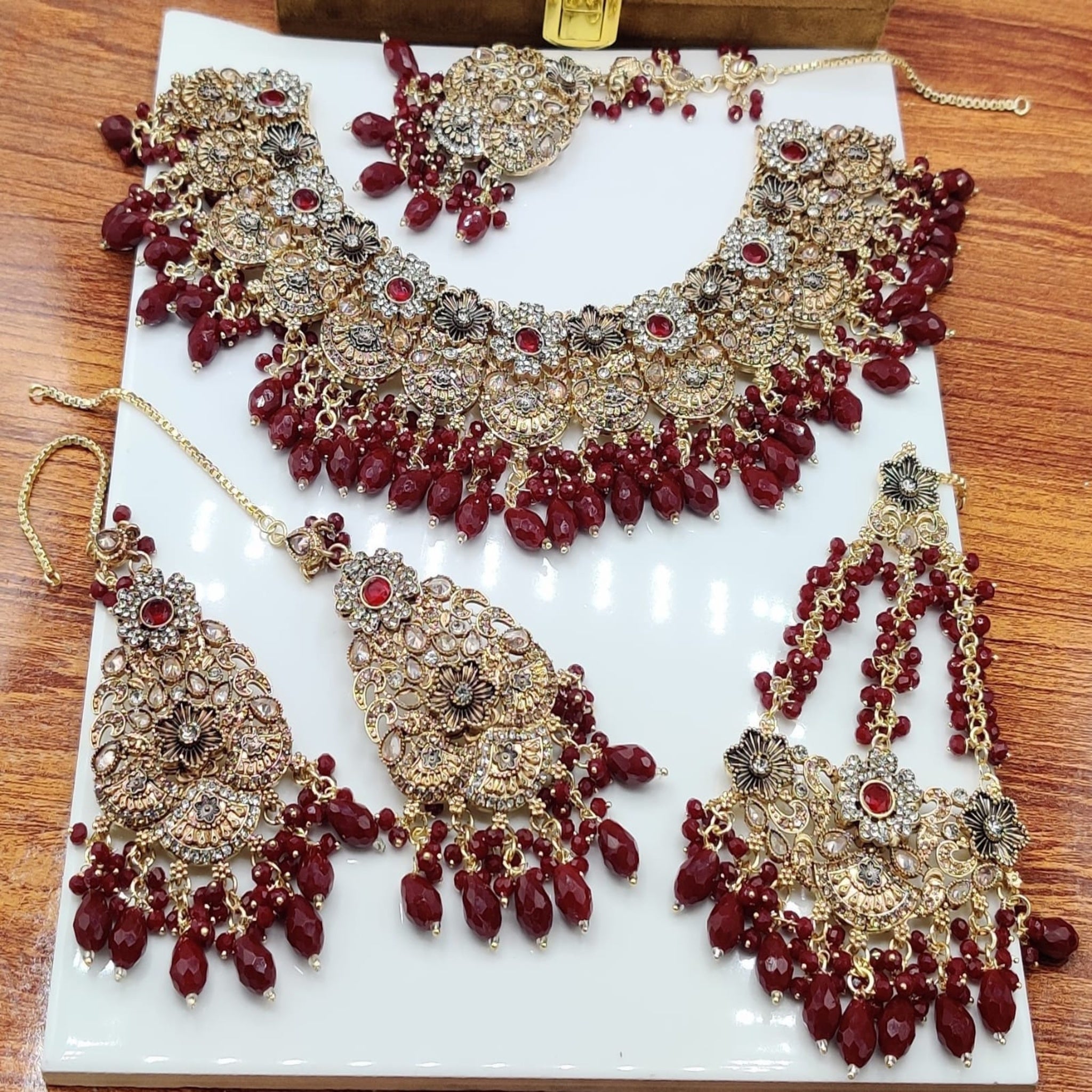 Deep Maroon Bridal Necklace Set (FDBN51) - Red