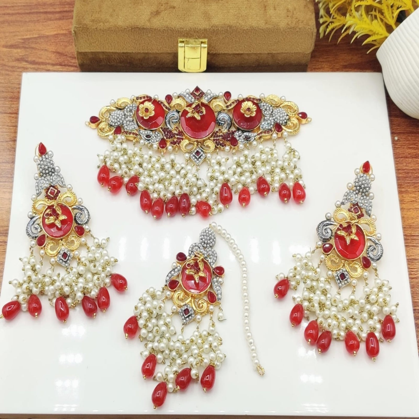 Crafted with the utmost attention to detail, the Gracious Fancy Heavy Bridal set from pjfashion.pk guarantees top-quality and stunning design. Perfect for brides looking for a glamorous and elegant look on their special day.