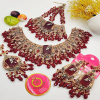 The set includes a statement necklace and matching earrings, making it ideal for Barat, Nikkah, or any royal bridal look. Whether paired with a red, maroon, or gold outfit, this piece completes your ensemble with elegance and grace.
