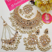This elegant white kundan bridal set by pjfashion.pk jewellery is the perfect accessory for your big day. Made from high-quality materials and expert craftsmanship, it will add a touch of sophistication and luxury to your bridal look. Make a statement with this stunning bridal set.