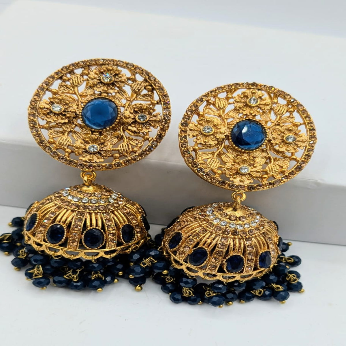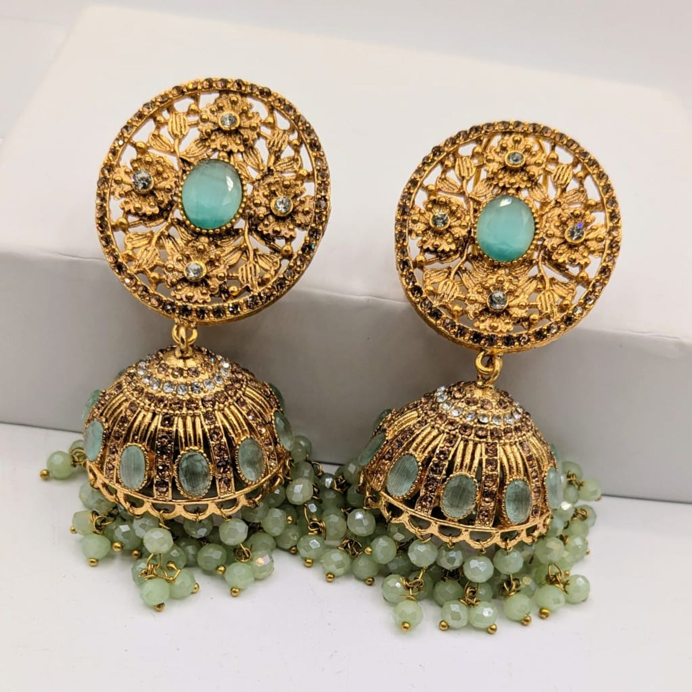 Elevate your traditional ensemble with this exquisite Fancy Jhumka featuring vibrant colored stones and delicate beads, expertly crafted with intricate Kundan work. Designed by pjfashion.pk, this elegant accessory combines classic artistry with vibrant hues, adding a refined touch to any occasion. Its lightweight design ensures comfortable wear while making a captivating statement. Perfect for enhancing festive and formal looks with timeless charm.