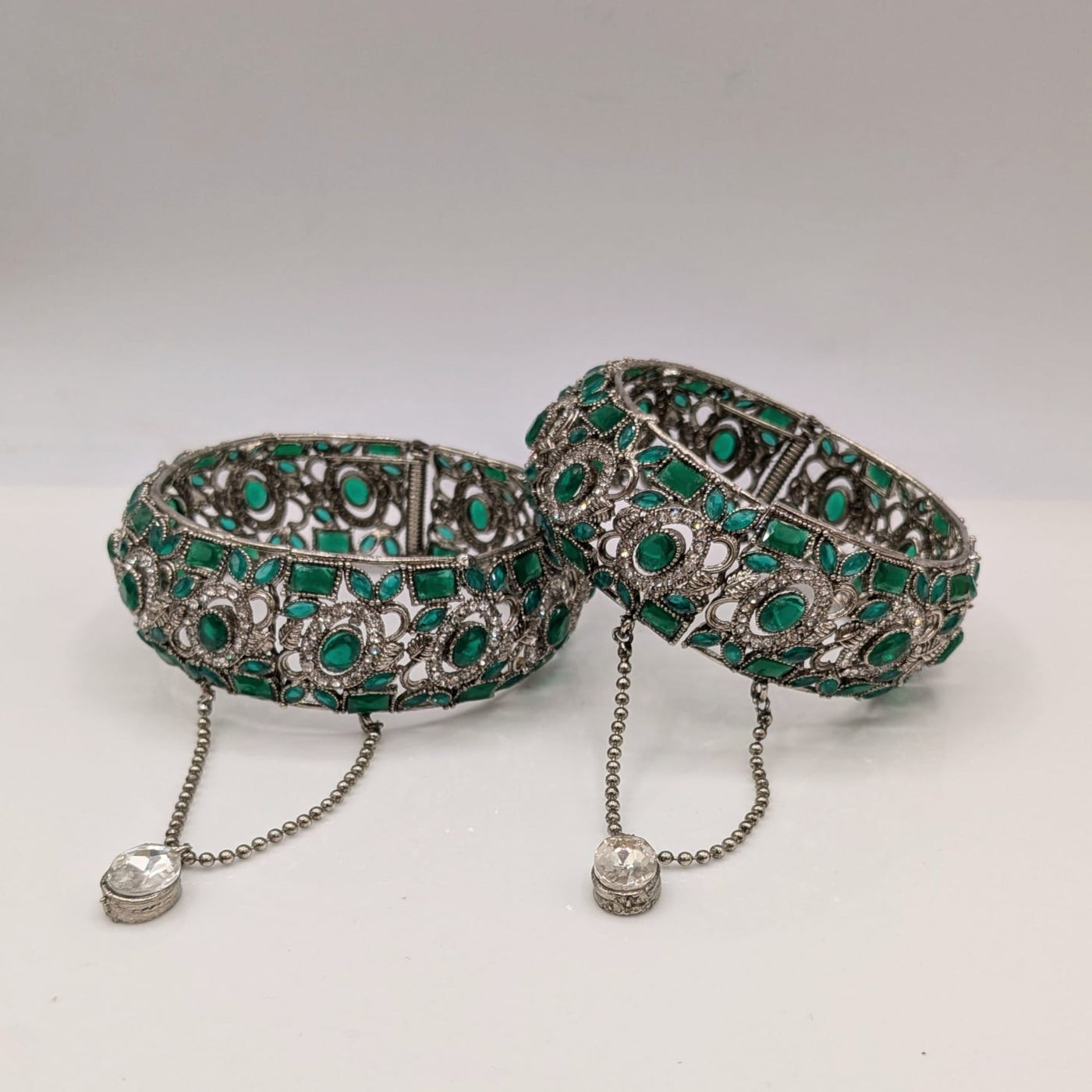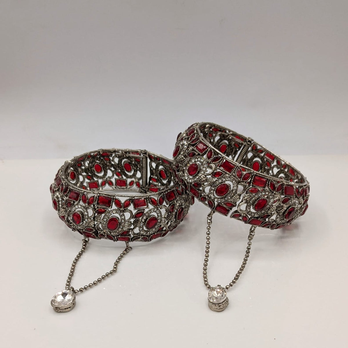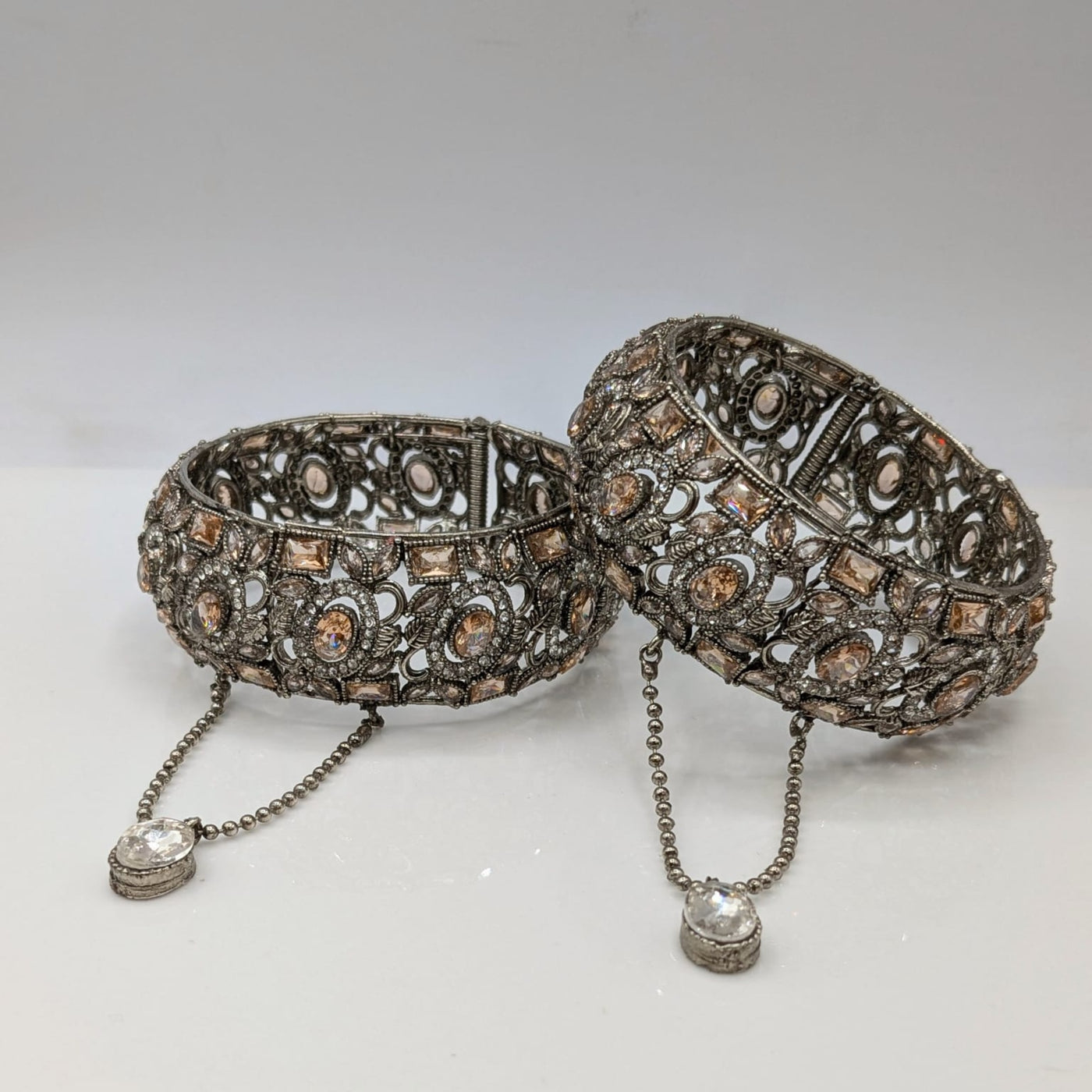 This zircon silver openable kara pair from pjfashion.pk features high-quality karrat stones and comes in a variety of colors. Made with expertise, these kara pairs add a touch of elegance to any outfit. Upgrade your style with this versatile and timeless accessory.