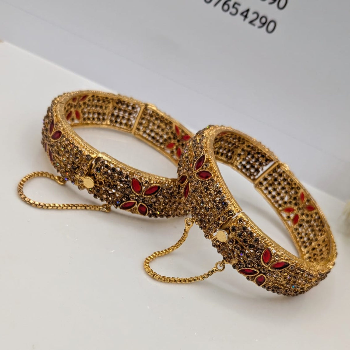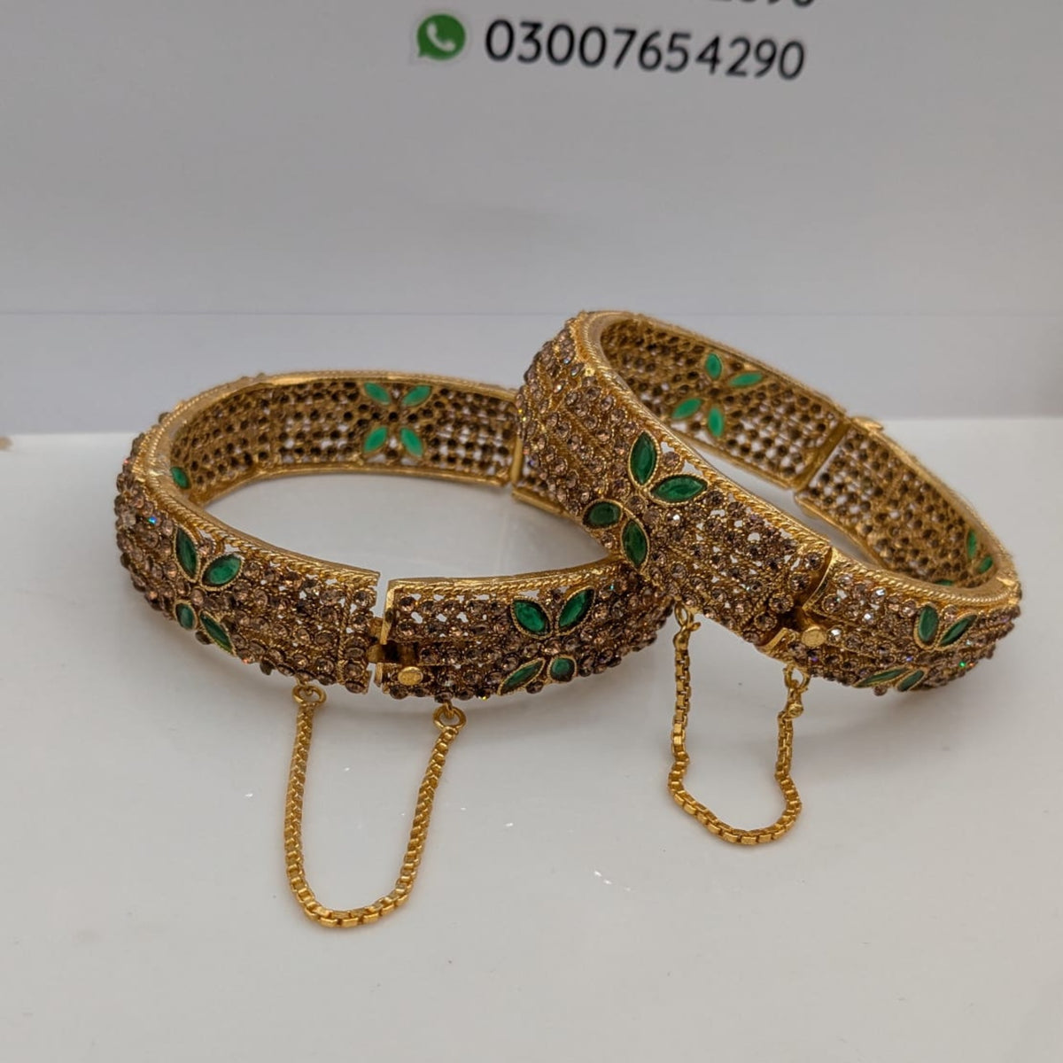 Elevate your traditional jewelry collection with this exquisite pair of fancy openable karas, meticulously crafted with brilliant zirconos stones. Each kara features a sophisticated design that seamlessly blends timeless elegance with contemporary sparkle. The openable mechanism ensures effortless wear and removal while maintaining a secure, comfortable fit throughout the day. Perfect for weddings, festivals, and special occasions, these karas showcase premium craftsmanship and radiant brilliance. Ideal for those who appreciate refined jewelry that honors cultural heritage without compromising on modern style and durability.