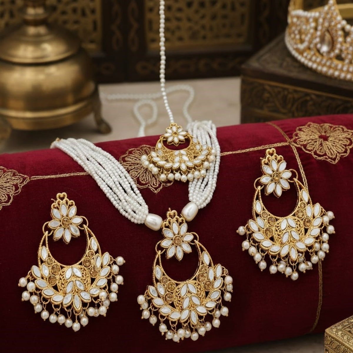 Elegant Gold-Plated White Kundan Choker Set (FDN145)