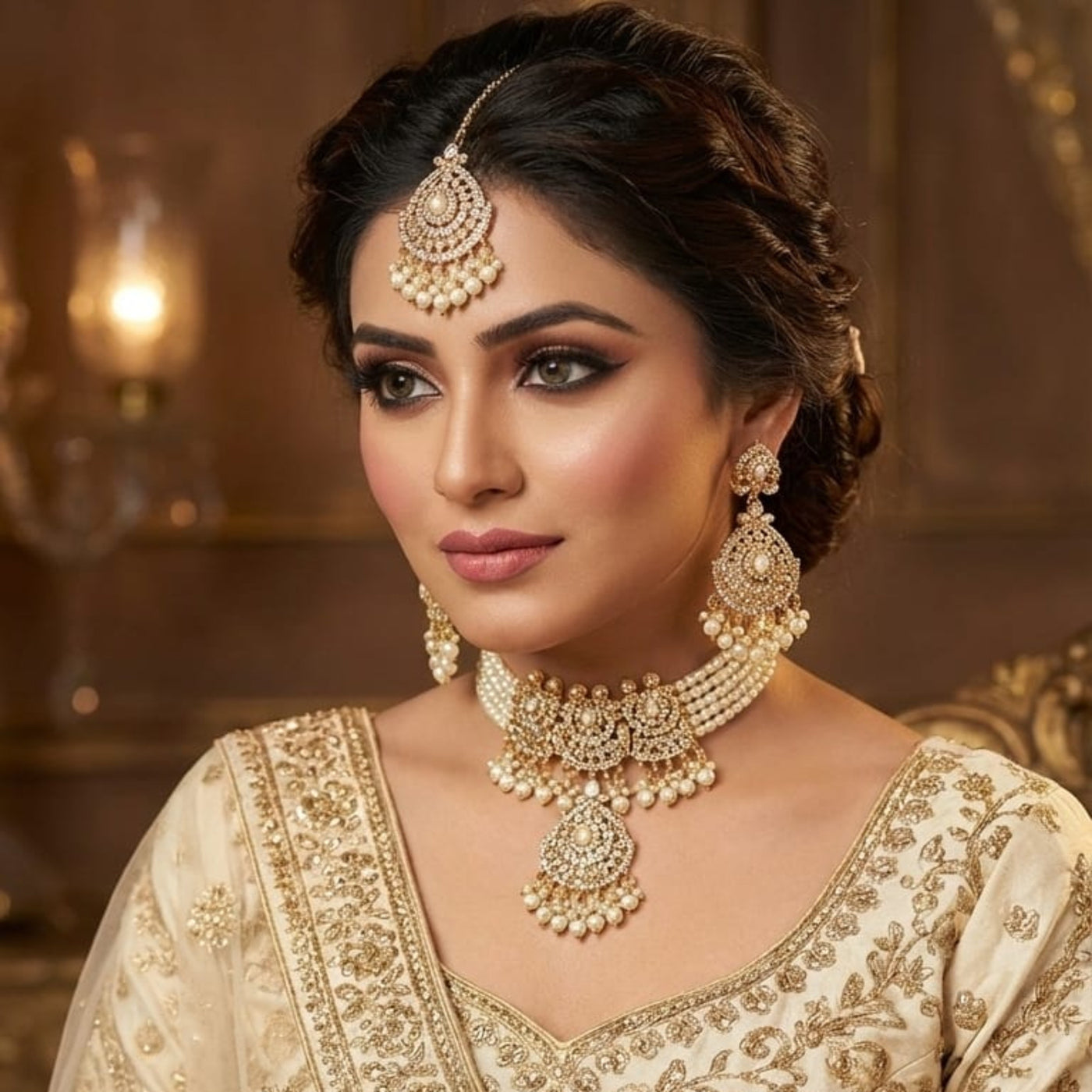 Pearl Kundan Choker Necklace Set (FDN189)