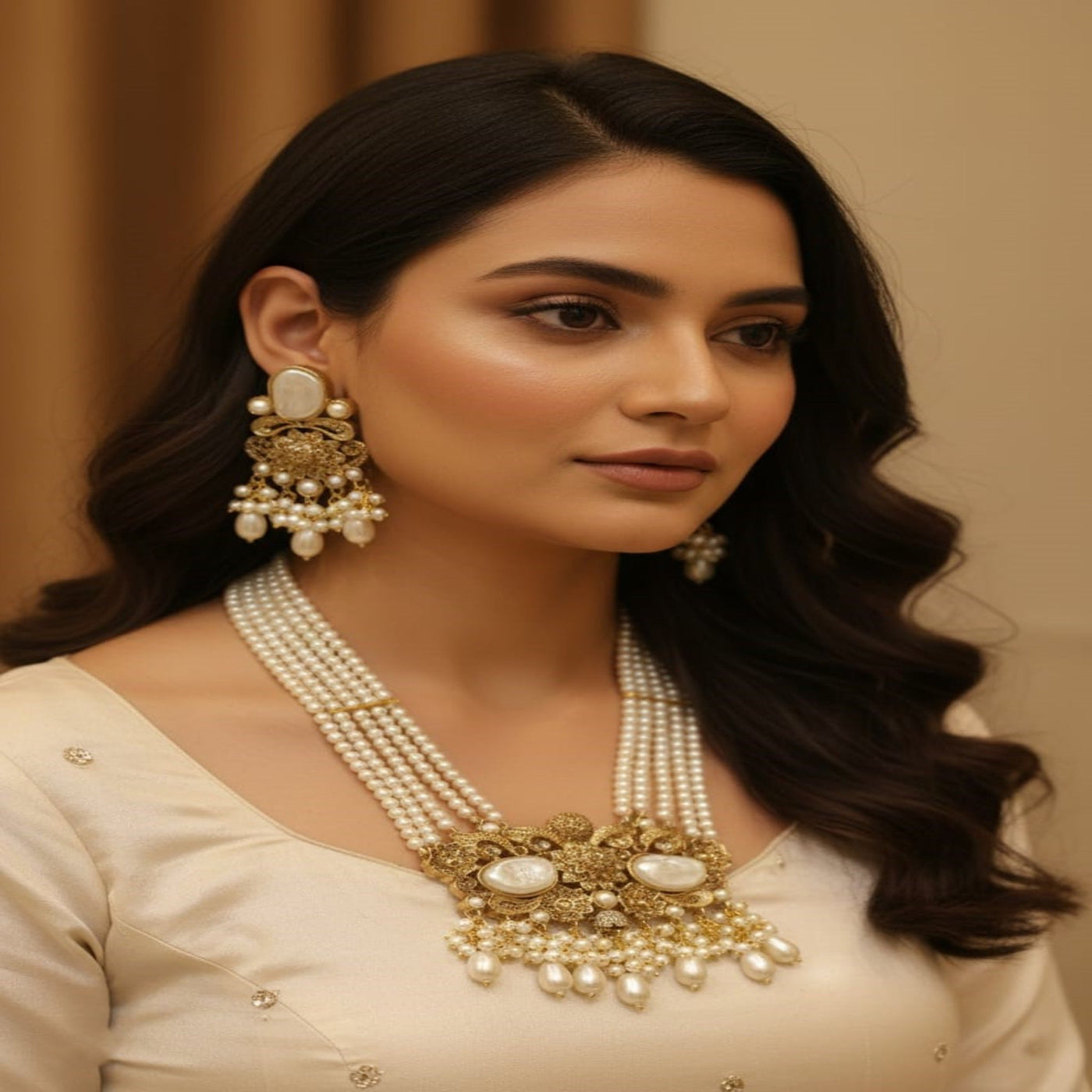 Royal Multi-Layer Pearl Mala (FDM114) - White