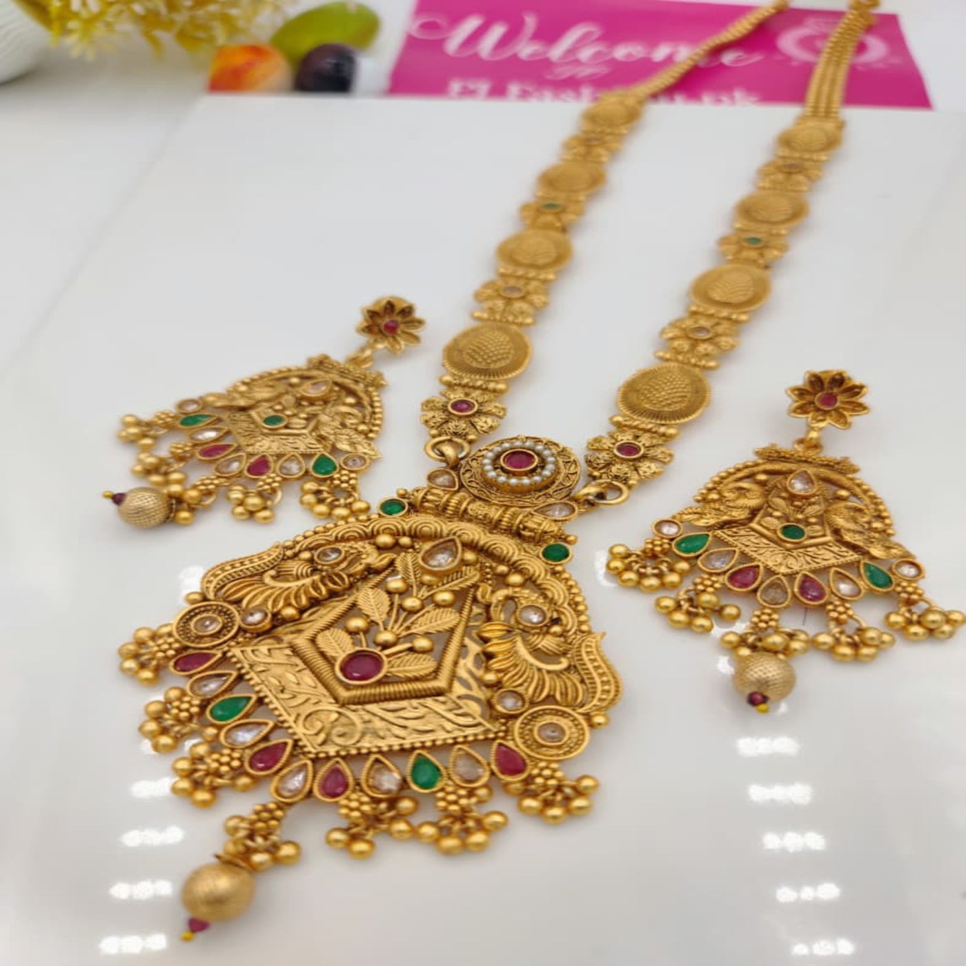 Elevate your traditional ensemble with the Decent New Design Rajwari Maala Set by pjfashion.pk. This expertly crafted set features intricate detailing and a sophisticated design that embodies timeless elegance. Perfect for special occasions, it adds a refined touch to your look while maintaining cultural authenticity. Each piece is carefully designed to offer both style and comfort, making it a distinguished addition to your jewelry collection.