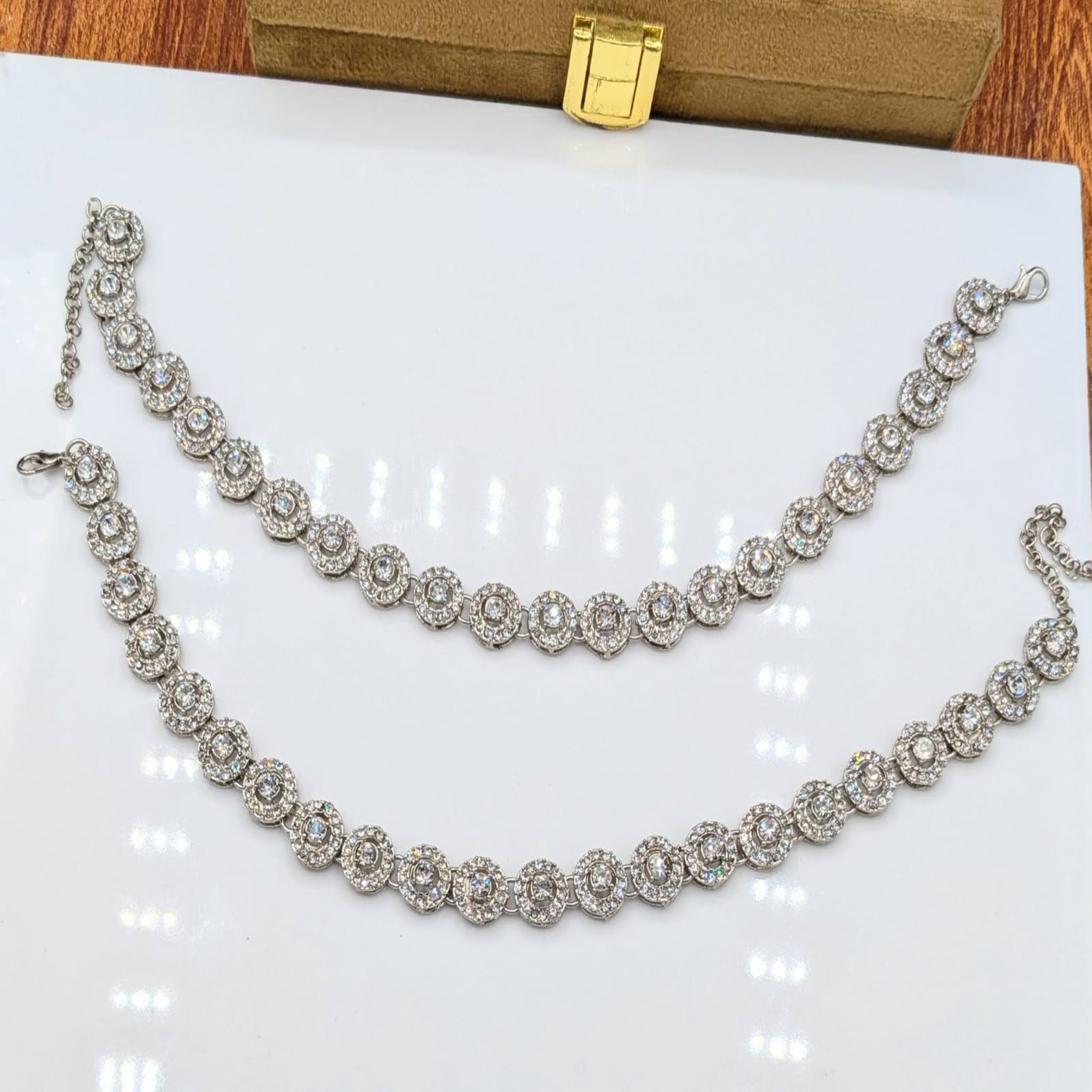 These Graceful Steps Girls Anklets by pjfashion.pk are crafted with karrat quality and adorned with silver white stones. Elevate any outfit with their elegant and sophisticated touch. Perfect for any occasion, these anklets will add a touch of glamour to your little one's look. Upgrade their style with these stunning anklets.