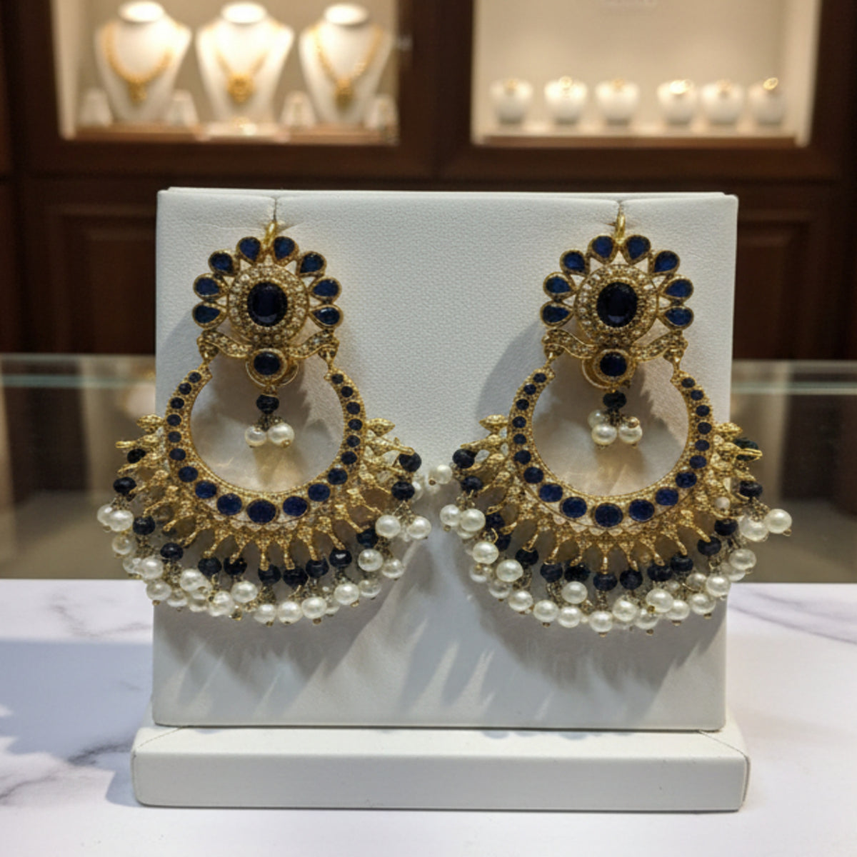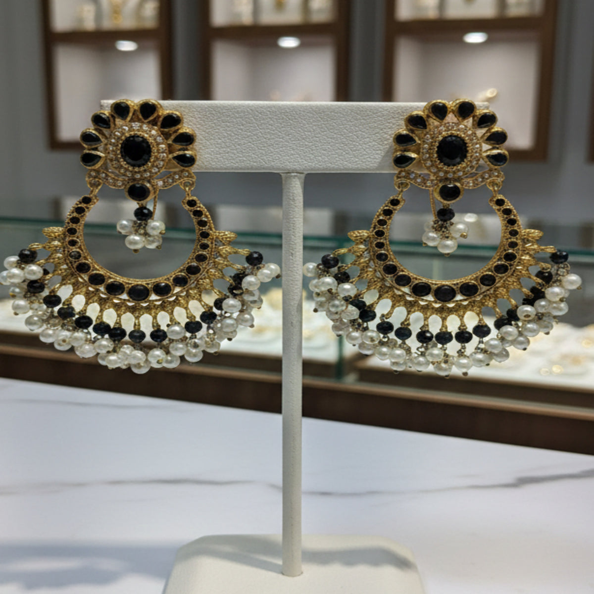 A masterpiece of boutique jewelry, these earrings feature multi-layered 3D golden flowers. The petals are encrusted with clusters of shimmering emerald green and ruby-pink crystals, leading down to a large, organically shaped baroque pearl. This pair is for the woman who loves one-of-a-kind, artistic luxury.