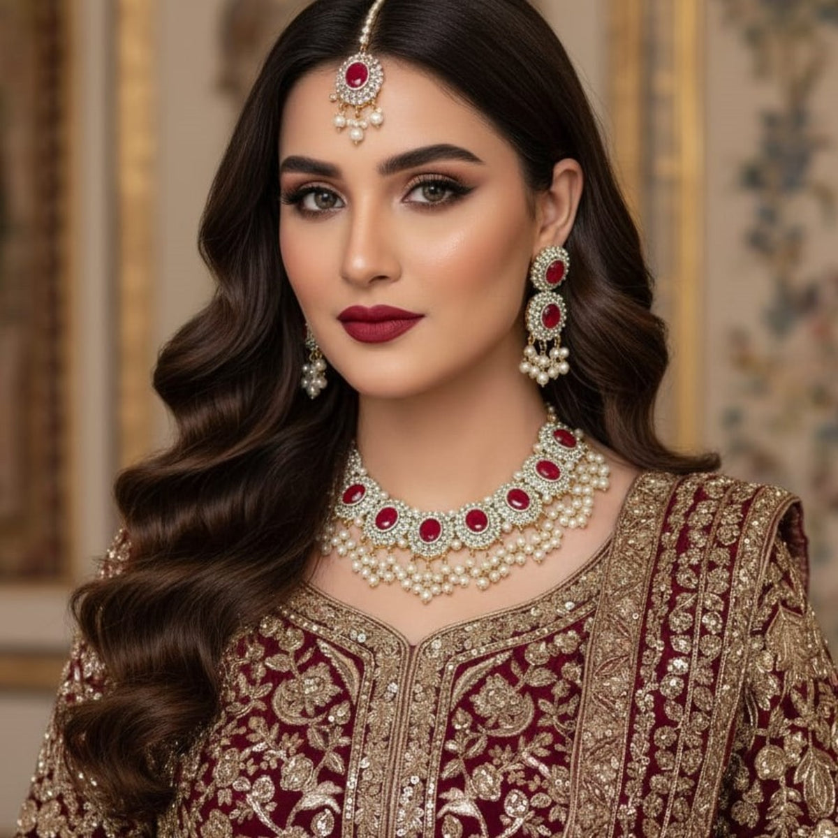 Elevate your jewelry collection with this exquisite Golden Maroon Delicate Necklace Set from PJ Fashion. Crafted with meticulous attention to detail, this sophisticated piece combines rich maroon tones with lustrous golden accents, creating a striking contrast that complements both traditional and contemporary ensembles. The delicate design ensures comfortable everyday wear while maintaining an elegant presence. Perfect for special occasions or adding a touch of refined glamour to your daily style, this necklace set showcases superior craftsmanship and timeless appeal. A versatile investment piece that transitions seamlessly from casual to formal settings.