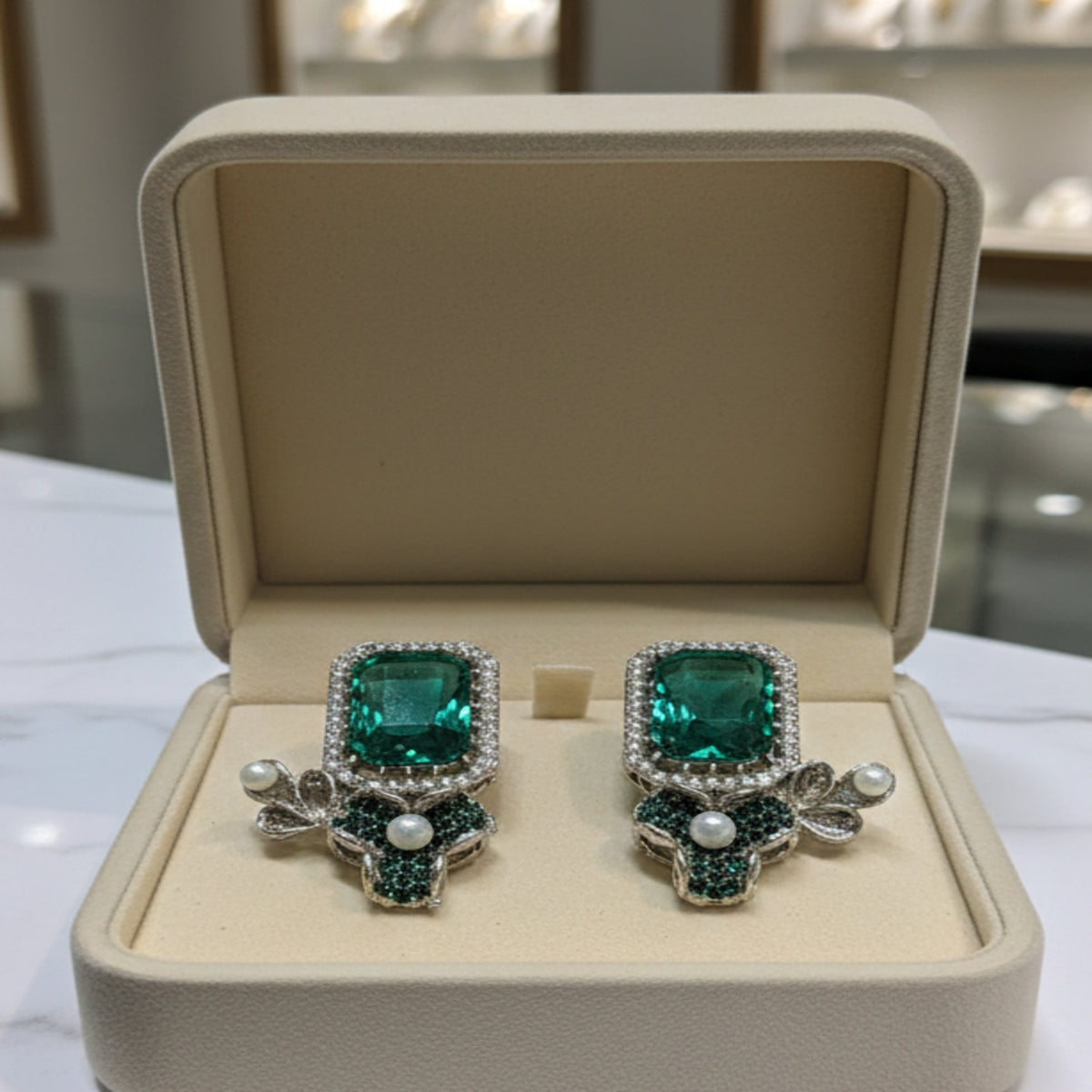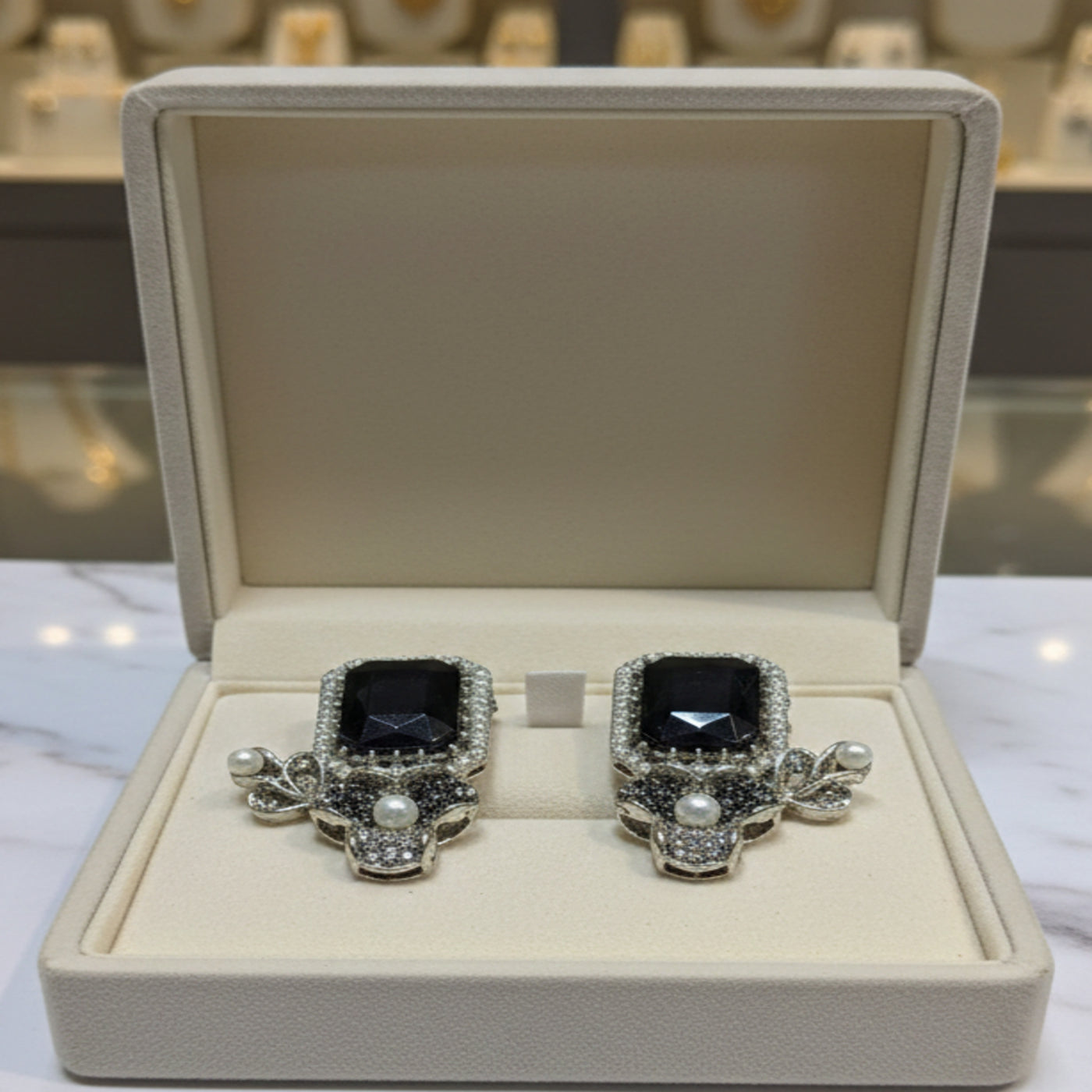 Make a powerful statement with these Royal Shield Studs. Inspired by the grand architecture of the Mughal era, these oversized studs feature a dense floral and geometric pattern. Every inch is detailed with high-precision gold work and bordered with shimmering white micro-pearls, offering a look of pure luxury.