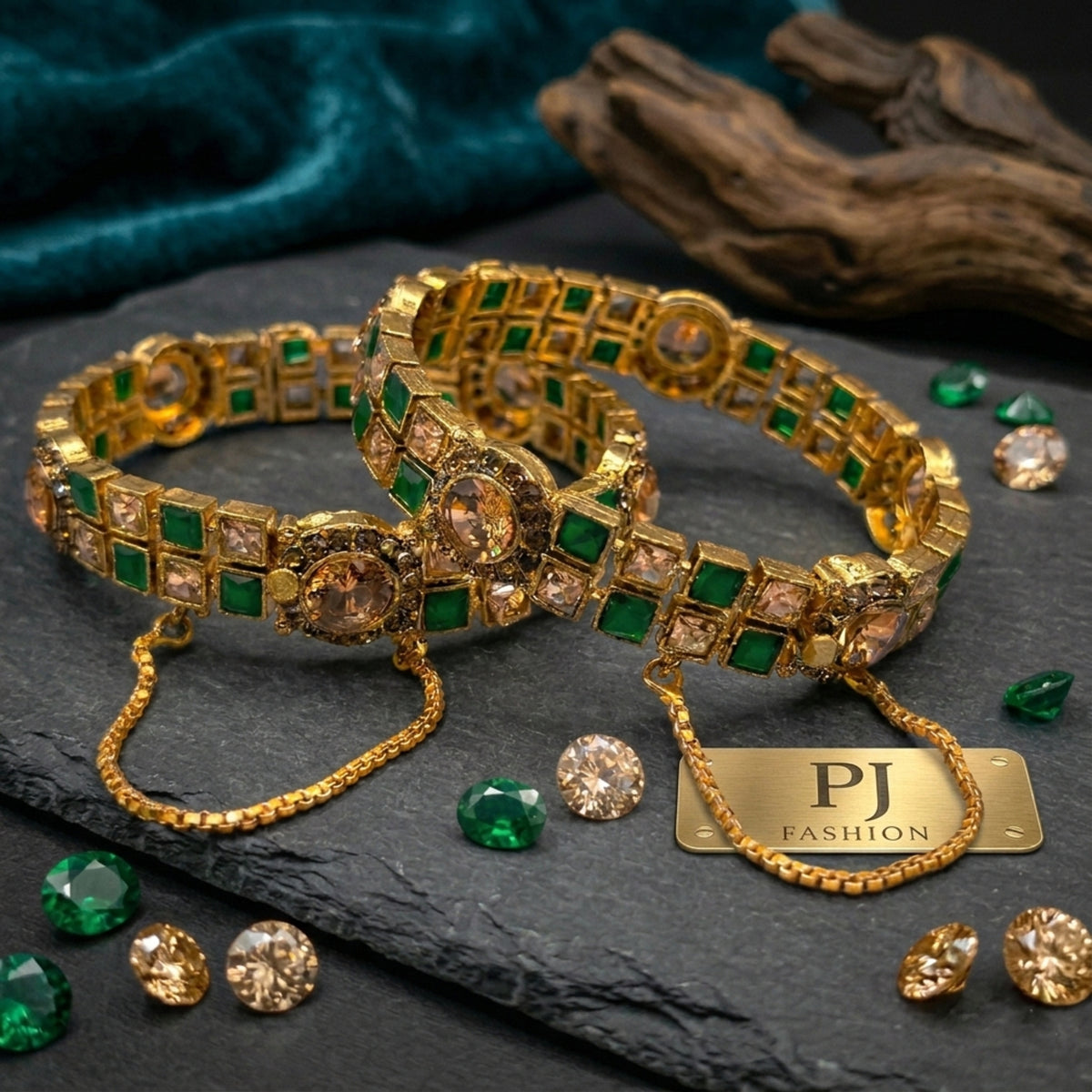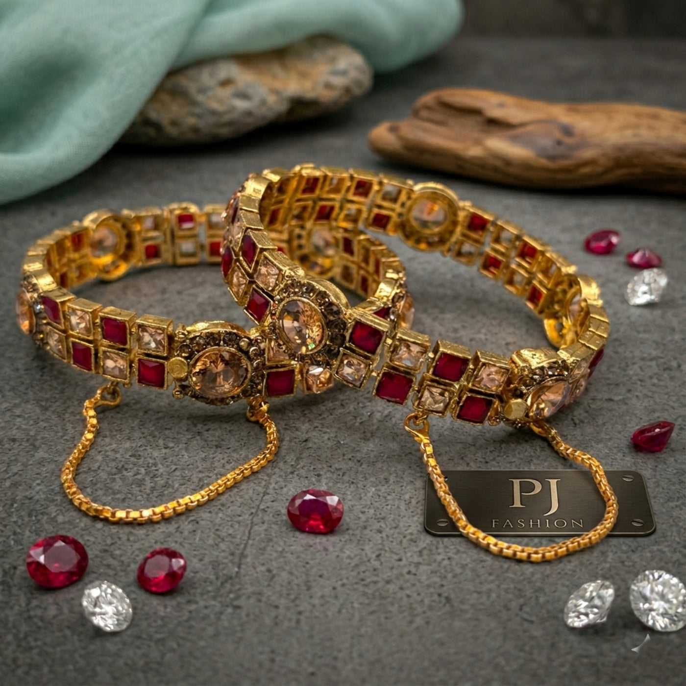 Make a bold style statement with the Orbital Gold Kada Pair. These openable kadas (bracelets) feature a striking concentric ribbed texture (calibrated finish) and are tipped with high-shine ruby-red stones for a touch of regal contrast. Designed for the modern woman who appreciates high-fashion fusion jewelry, these kadas look exceptional when stacked with a luxury watch or worn solo as a powerful wrist accent.